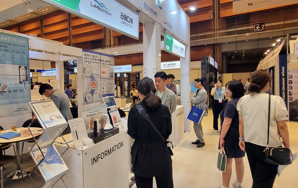 또 라메디텍은 바늘 없이 레이저를 이용해 말초혈액을 채혈하는 레이저채혈기(HandyRay-Lite, HandyRay-Pro)와 엑시머 광을 이용한 피부질환 치료기기(CAREVEAM)를 전시해 당뇨 혈당 측정 및 말초혈액 채혈을 통해 개개인의 최적화된 진단과 치료방법 제시 등 응용 분야를 소개했다.