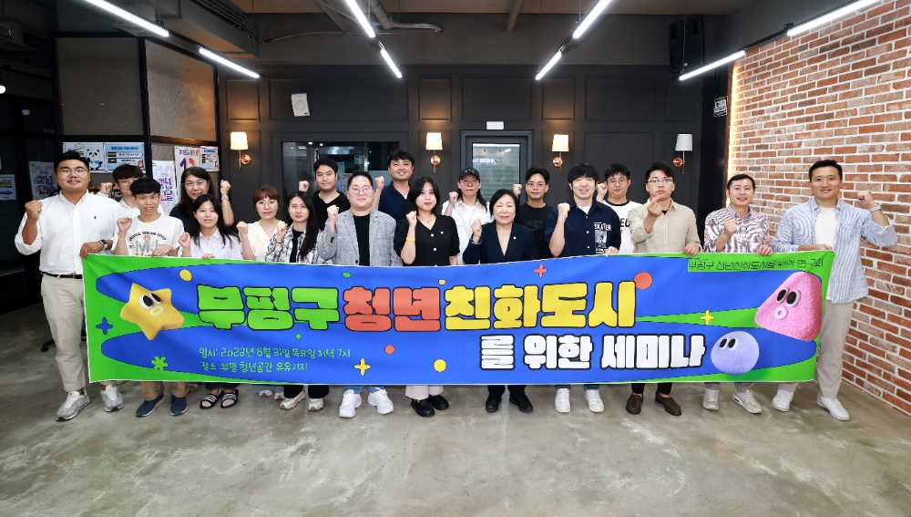 이미지 확대보기부평구의회 의원연구단체인 ‘부평구 청년친화도시를 위한 연구회(대표의원 정예지)’가 지난달 31일 유유기지 부평에서 '부평구 청년친화도시를 위한 세미나'를 개최했다고 1일 밝혔다.
