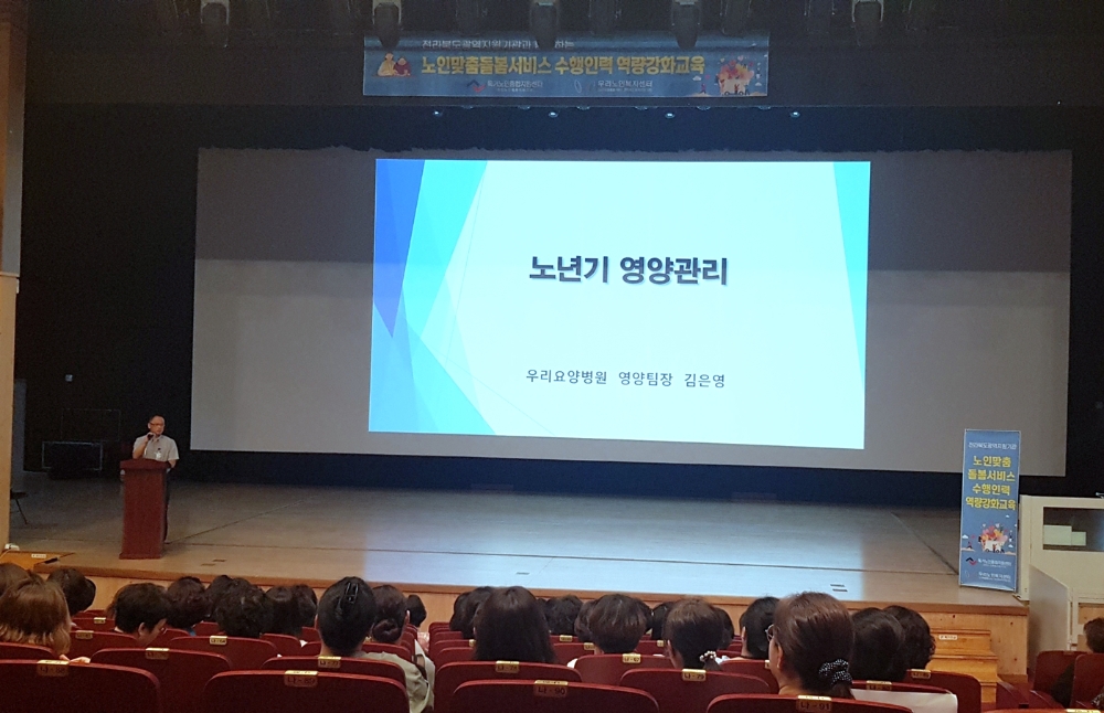 두 번째 교육은 군장대학교 김현미 겸임교수가‘근력운동 및 스트레칭’이라는 내용으로 어르신들에게 일상적인 근력운동의 중요성을 전파할 수 있도록 강사와 함께 몸을 풀어주는 교육을 진행했다.