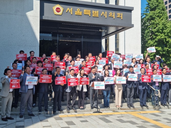 서울시의회 국민의힘 76명 의원, 학생인권조례 폐지안 상정 촉구하며 피켓시위