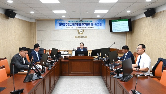 이미지 확대보기11일 북구의회에 따르면 연구회 소속 의원들과 연구용역 수행기관인 지방자치의정연구원 윤진훈·임중호 연구원 등이 참석한 보고회는 수행기관의 용역 착수보고, 질의응답의 순서로 진행되었다.