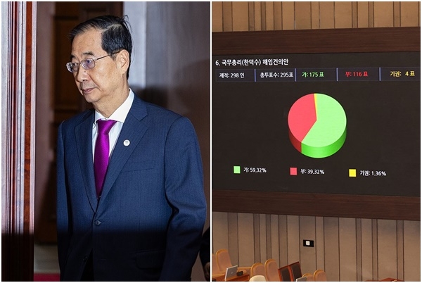 한덕수 국무총리 해임건의안 헌정사 최초 국회 통과