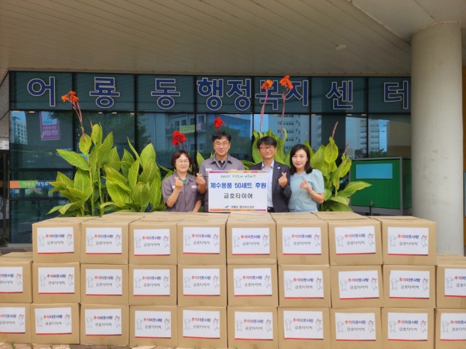 금호타이어가 준비한 물품은 광산구청을 비롯하여 광산구 어룡동 행정복지센터, 광산구 더불어락 노인복지관, 서구 노인복지관, 곡성군 입면사무소 등을 통해 각 가정에 전달될 예정이다.