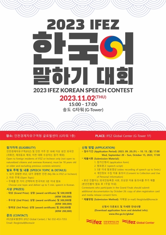 이미지 확대보기지난 2021년 첫 대회를 시작으로 올해로 세 번째 열리는 이번 대회에는 IFEZ 및 인천시에 거주하는 만 19세 이상 외국인(귀화인, 재외동포, 이전 대회 수상자 제외)이면 누구나 참여가 가능하다.