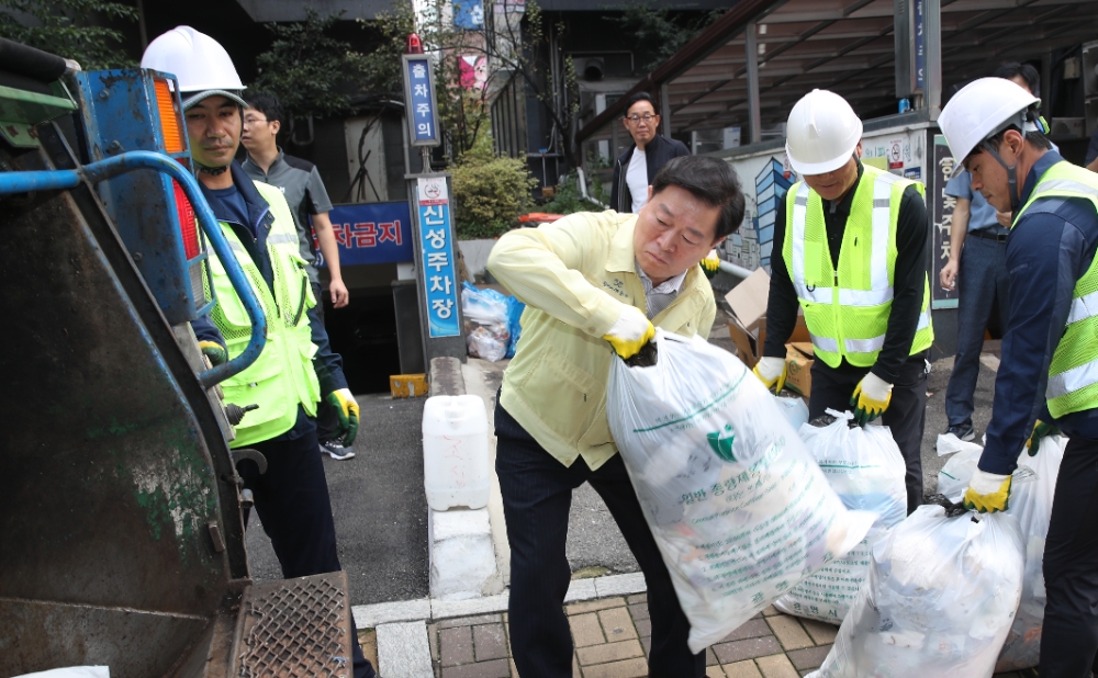 생활 쓰레기 수거 활동 참여하며 환경미화원 격려하고 불편 사항 청취