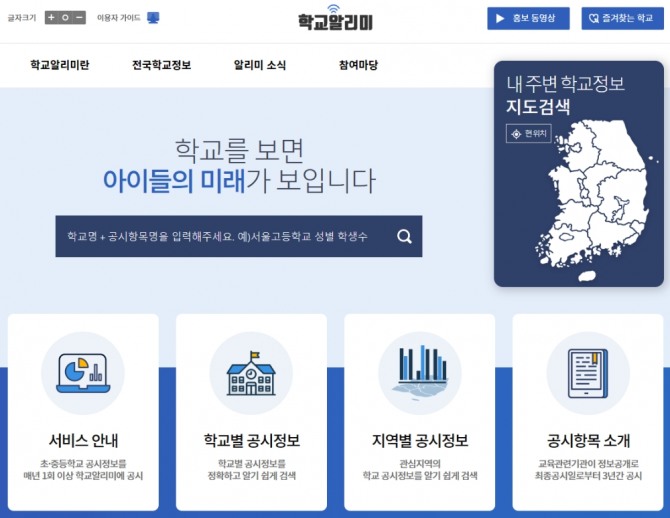 이미지 확대보기진학사는 학교현황과 교육활동, 학업성취사항 등 각 고등학교 정보를 객관적으로 파악하기 위해 학교알리미를 이용하면 된다고 6일 밝혔다.