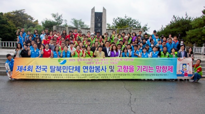 이미지 확대보기탈 북민 전국연합봉사단체지역인 부산, 대전, 충남지역 연합은 지난달 27일 추석 연휴를 앞두고 임진각에서 환경정리 봉사를 하고 고향 북녘 땅을 바라보며 망향제를 지냈다고 6일 밝혔다.