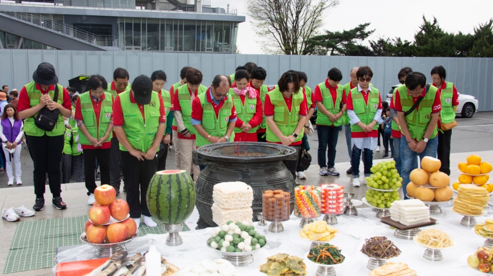 환경미화 행사 후 망향제 올리고 가족들 안녕도 기원