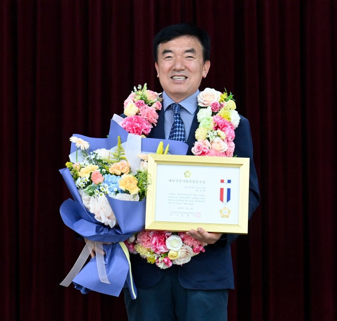 ‘대한민국지방의정봉사상’은 투철한 사명감과 봉사정신으로 지방의정 발전과 주민화합, 지역사회 발전에 기여한 지방의원에게 수여하는 상이다.