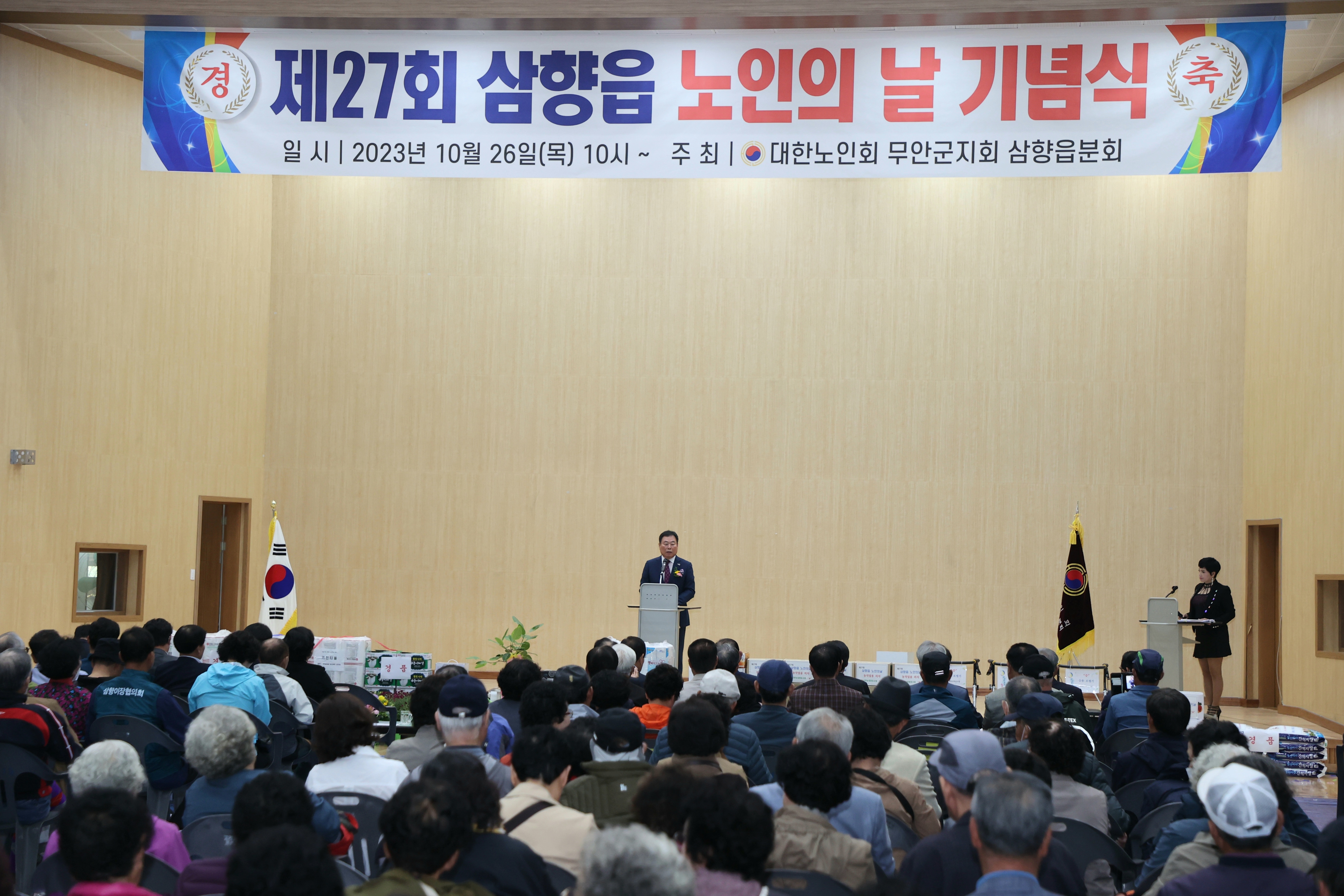 주요 행사는 풍물, 민요 등의 식전행사와 기념식, 식후 축하공연 순으로 진행되었으며, 기념식에서는 노인강령 낭독, 모범노인(양문회)과 노인복지 기여자(이재수) 군수 표창, 분회 표창으로 장수상(나종기, 김금례) 시상과 감사패(나옥숙, 박길웅, 양연주)를 수여했다.