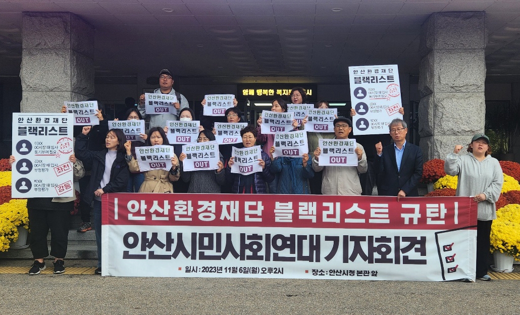 윤 전 대표이사는 또 지난 6일 안산시청 현관 앞에서 진행된 안산시민사회연대의 '안산환경재단 블랙리스트 규탄' 회견에도 참석해 같은 주장을 했다.