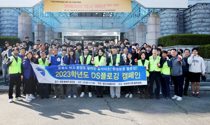 동신대학교가 지난 7일 ‘2023년 11월 플로깅 캠페인’을 진행 후 기념촬영을 하고 있다. 사진=동신대