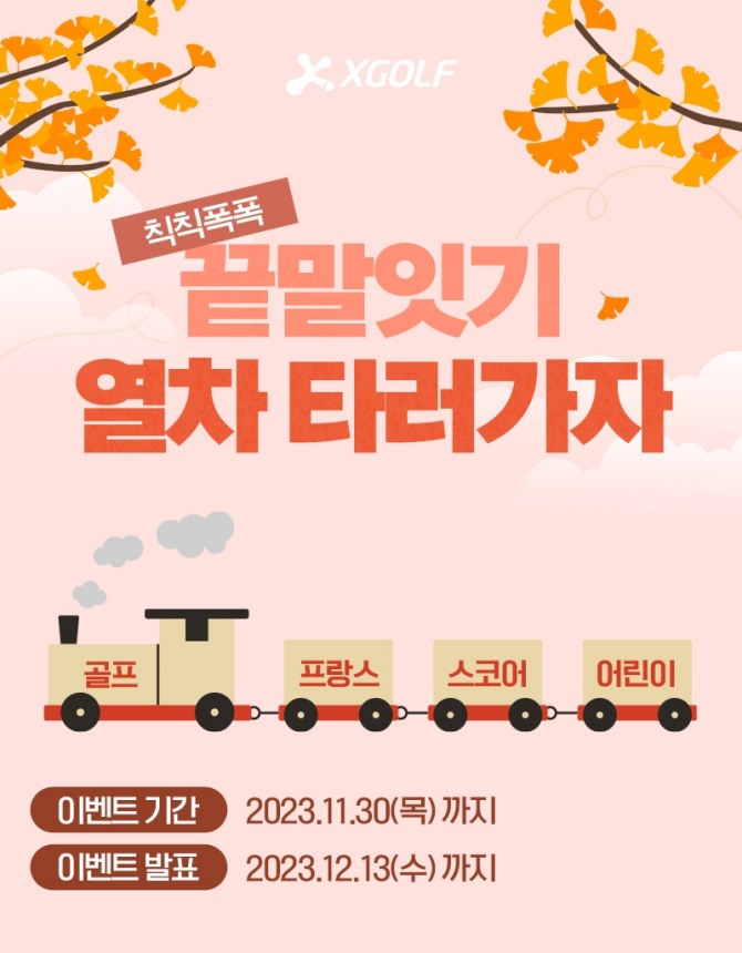 이달 30일까지 참여할 수 있는 ‘칙칙폭폭 끝말잇기 열차’ 이벤트는 제시된 단어의 끝 글자를 기준으로 댓글에 이어지는 단어를 남기면 추첨을 통해 헤드커버와 골프공 등의 상품을 증정한다.