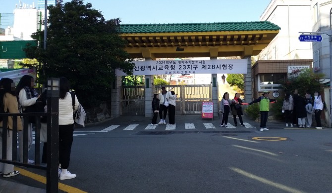 이미지 확대보기2024학년도 대학수학능력 시험이 하루 앞으로 다가온 가운데 예비소집일인 15일 오전, 수험생들이 부산교육청 제23지구 28시험장인 부산 동구 수정동로 경남여자고등학교를 찾고 있다.