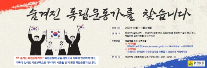 곽영호 전남도 사회복지과장은 “전남도 대표 민간 기업과 협력해 큰 성과를 거두고 있다”며 “의향 전남의 정체성을 찾는 독립운동가 발굴 캠페인 전개로 국가유공자 예우 문화가 확산되길 기대한다”고 말했다.