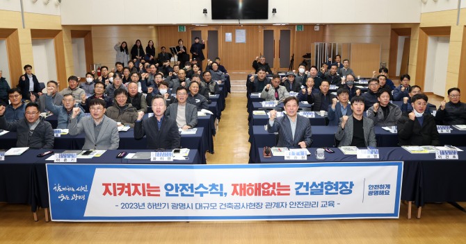 이미지 확대보기광명시는 지난 16일 오후 시청 대회의실에서 관내 대규모 건축공사 현장 관계자 등 85명을 대상으로 안전관리교육을 실시했다.