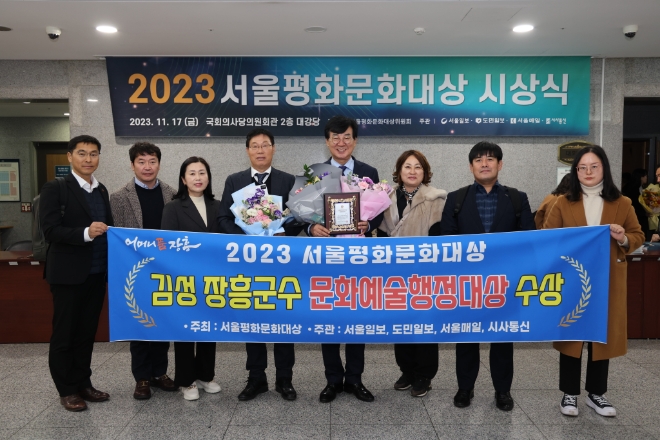 김성 장흥군수는 ‘2023년 문화예술관광 르네상스 원년’과 ‘대한민국 통일 시작의 땅 장흥’을 선포해 차별화된 지역브랜드 구축, 문림의향의 고장인 장흥의 얼을 이어가기 위한 제1회 장흥문학제 개최, 전국 유일 안중근 의사 사당 해동사에 역사 추모관 설립 등의 공로가 인정되어 문화예술행정부문에서 대상을 수상했다.
