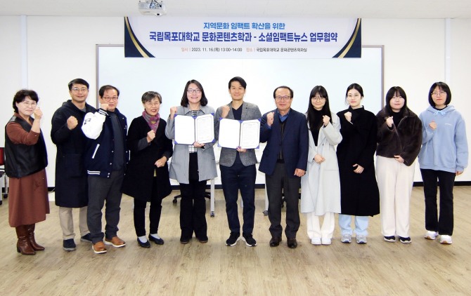 국립목포대 문화콘텐츠학과 전형연 학과장은 “그동안 문화콘텐츠학과 학생들의 관심이 지역문화콘텐츠 등 지역의 문화활성화에 대한 지식 함양에 집중되어왔다”라며 “소셜임팩트뉴스와의 MOU 체결을 통해 지역의 지속가능발전에 대한 심층적인 인식과 실천적 참여에까지 확대될 수 있는 계기로 작용하기를 기대한다”라고 밝혔다.