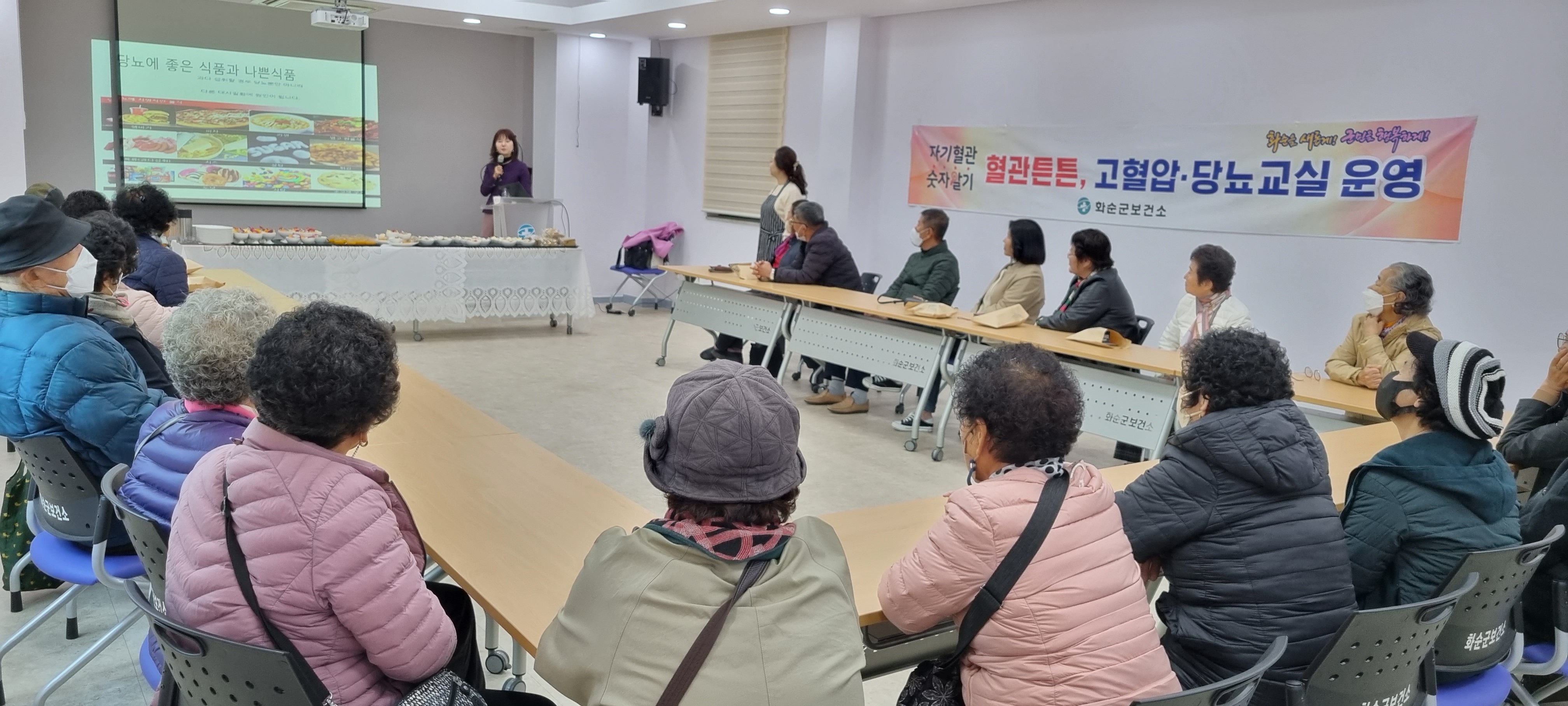 이번 교육은 식품영양학 전문 강사와 연계하여 보건소와 12개 면을 순회하며 복지회관에서 진행했다.