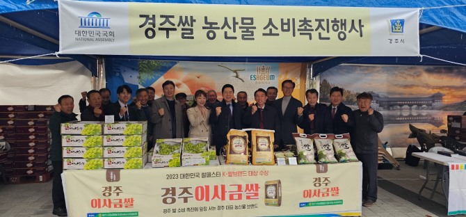 이날 국회 소통관에서 열린 행사에는 경주 특산물 ‘이사금쌀’ 등 지역 우수 농산물들이 대거 출동해 소비자들의 마음을 사로잡았다.