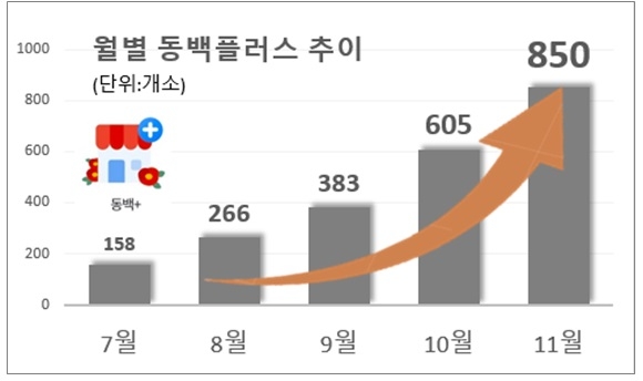 한편, 시는 이번 특화거리와 같은 동백전플러스 가맹점 확대 정책으로 지난 7월말 158곳에서 최근 850여 곳으로 증가했다. 지역의 특색있는 골목상권과 연계해 동백플러스 특화거리 조성을 지속적으로 확대해 나갈 예정이다.