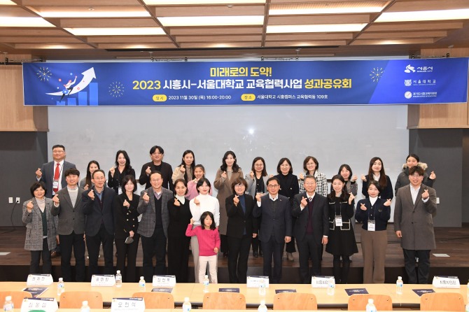 이미지 확대보기2023년 교육협력사업의 한 해의 성과와 향후 비전을 공유하는 이번 자리에는 연제찬 시흥시 부시장을 비롯해 송미희 시흥시의회 의장, 이상기 시흥교육지원청 교육장, 강준호 서울대학교 사범대학장 및 교사, 학생, 학부모 등 서울대 교육에 관심을 가진 관계자 190여명이 참석해 서울대 교육협력사업에 대한 소통과 함께 나아갈 방향에 대해 논의했다.