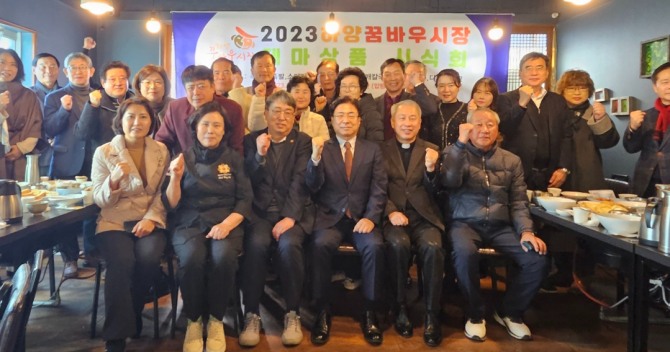 이미지 확대보기경북도가 추진한 ‘2023년 경북지역 상생협력 사업’의 일환으로 개최된 이날 행사에는 성한기 대구가톨릭대 총장과 김정기 하양읍장, 이상훈 하양읍 이장협의회장, 산학협력단 청년희망공작소와 함께 메뉴 개발에 참여한 멘토단 등 관계자들이 참석했다.