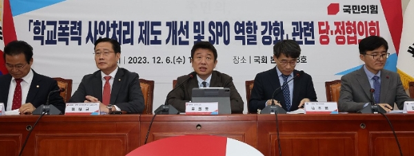 이미지 확대보기국민의힘과 정부는 6일 국회에서 ‘학교폭력 사안처리 제도 개선 및 SPO 역할 강화 당정협의회’를 열고 이같이 결정했다.