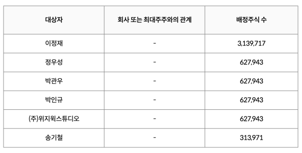 이미지 확대보기제3자배정 대상자는 이정재(313만 9717주), 정우성(62만 7943주) 등 6명이다.