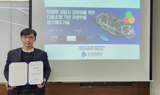 이미지 확대보기한국공학대학교 경기도지역협력연구센터(GRRC) 다중소재 가공기술 혁신연구센터 심재홍 교수와 김기현 교수가 최근 인하대학교에서 개최된 ‘2023년 한국생산관리학회 추계학술대회’에서 우수발표 논문상을 수상했다. ‘리인벤트 사회로 가는 길: OM의 뉴디멘드전략’이란 주제로 열린 이번 학술대회에서 심재홍·김기현 교수는 ‘미래형 자동차 경량화를 위한 다중소재 기반 차량부품 생산제조기술’이란 주제의 논문을 발표, 수상의 영예를 안았다.