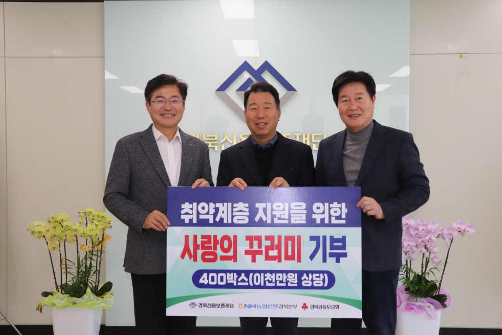 농협은행 경북본부와 경북신용보증재단이 기부한 사랑의 꾸러미는 경북공동모금회에서 경북도내 취약계층에 전달할 계획이다.