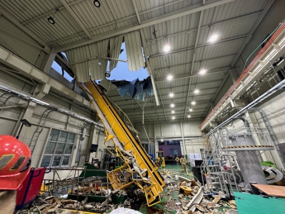 15일 오전 4시39분께 대전 유성구 장동 선박해양플랜트연구에서 폭발사고가 발생하면서 건물 안에 있던 크레인이 붕괴됐다.