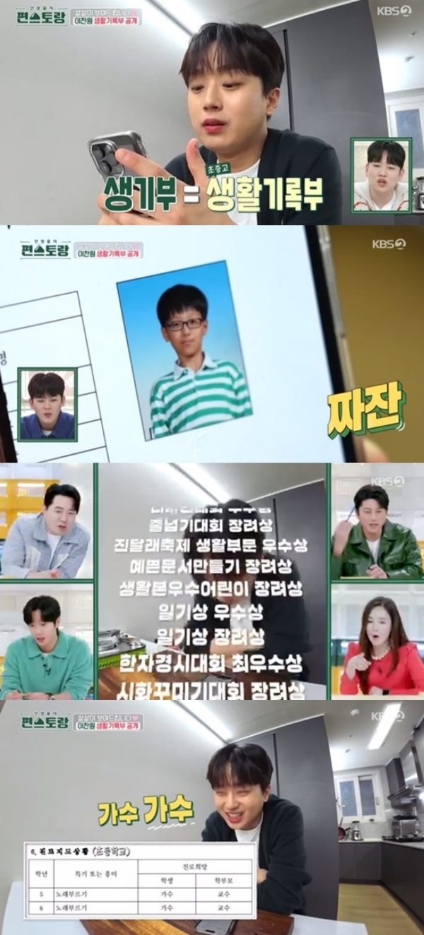 이찬원의 초, 중, 고 시절 생활기록부가 방송에서 공개되는 것은 이번이 처음이다. 먼저 생활기록부 속 자신의 과거 사진을 본 이찬원은 "너무 웃겨"라며 빵 터졌다.