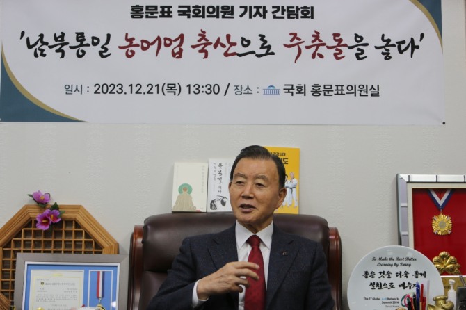 (홍 의원은 해가 갈수록 강도를 더하는 북한의 도발에는 강력하게 대응하는 것이 맞지만, 궁극적으로는 남북통일을 준비하고 이뤄내는 것이야말로 우리 민족의 숙원사업이라 강조하며 통일 방법론에 대해서는 농업 전문가답게 식량으로 접근하는 방안을 내놓았다.)