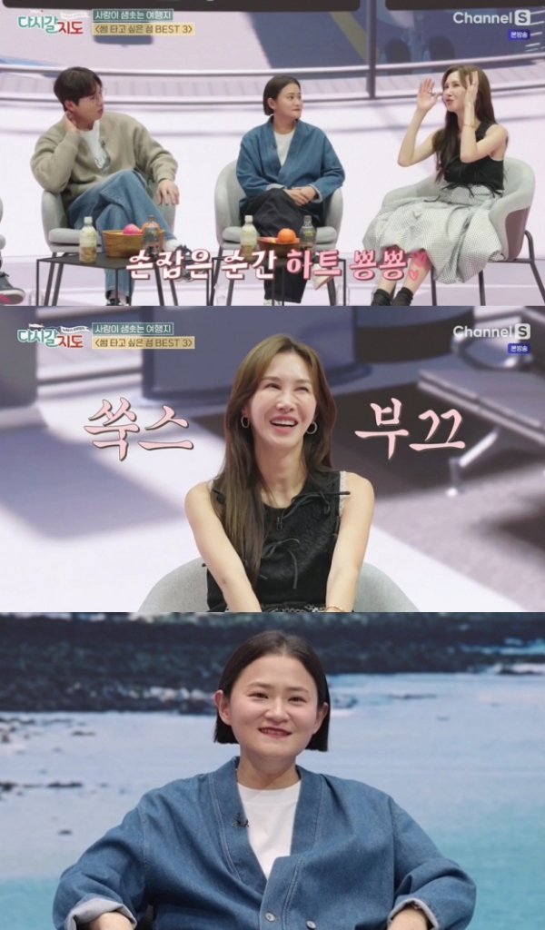 지난 21일 방송된 채널S 예능 프로그램 '다시갈지도'에서는 '썸 타고 싶은 섬 베스트 3'를 랭킹 주제로 여행 파트너 김신영, 이석훈, 최태성과 함께 윤혜진이 랜선 여행 동반자로 나섰다.