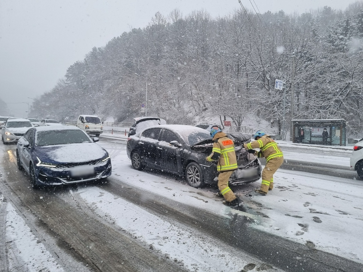 낮 12시 31분 광주시 퇴촌면에서는 눈길 교통사고가 발생했고, 낮 12시 40분 양주시 은현면에서는 빙판길 낙상사고로 부상자가 나왔다. 소방당국은 대설과 관련해 구급 19건, 안전조치 44건 등 총 63건의 활동을 벌였다고 밝혔다.