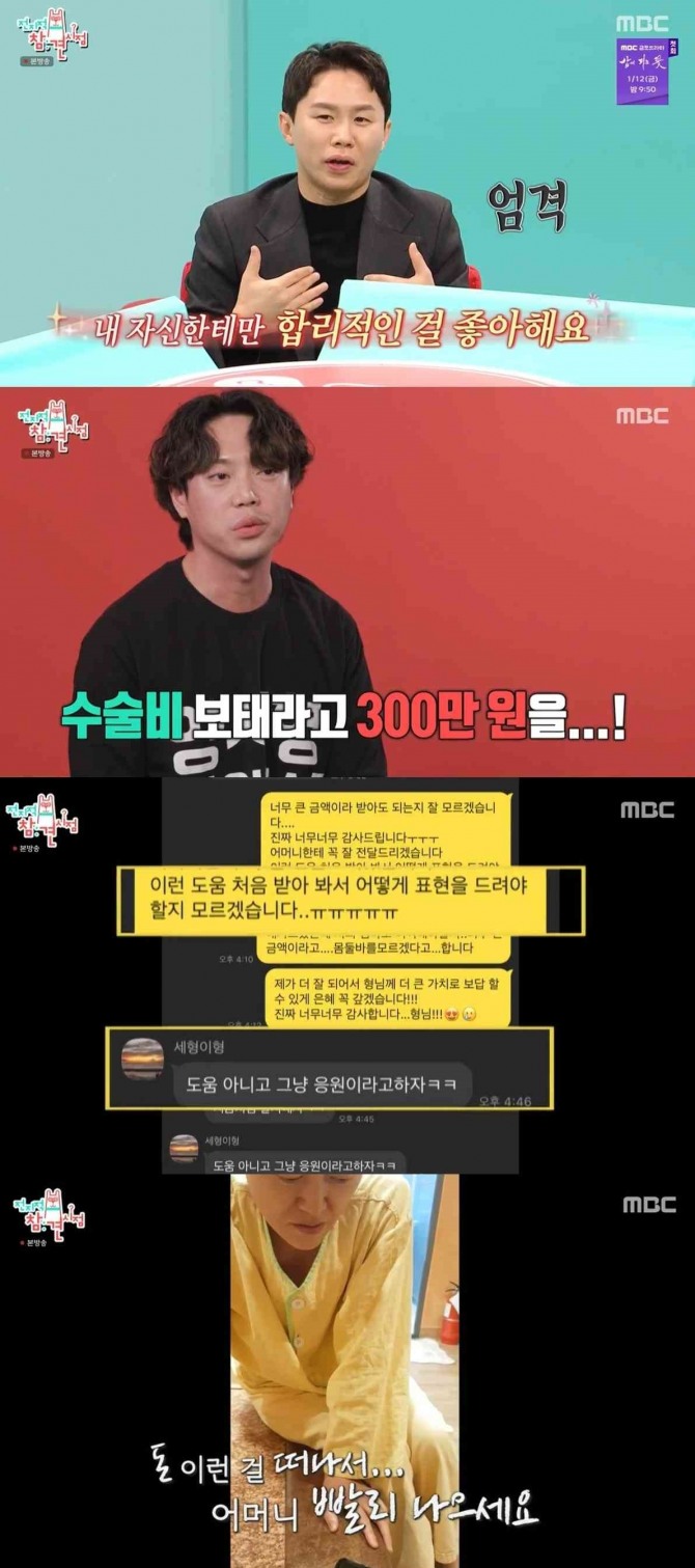 변진수가 감사함에 몸 둘 바를 몰라 하자 양세형은 "도움 아니고 응원이라고 하자"라고 답했다.