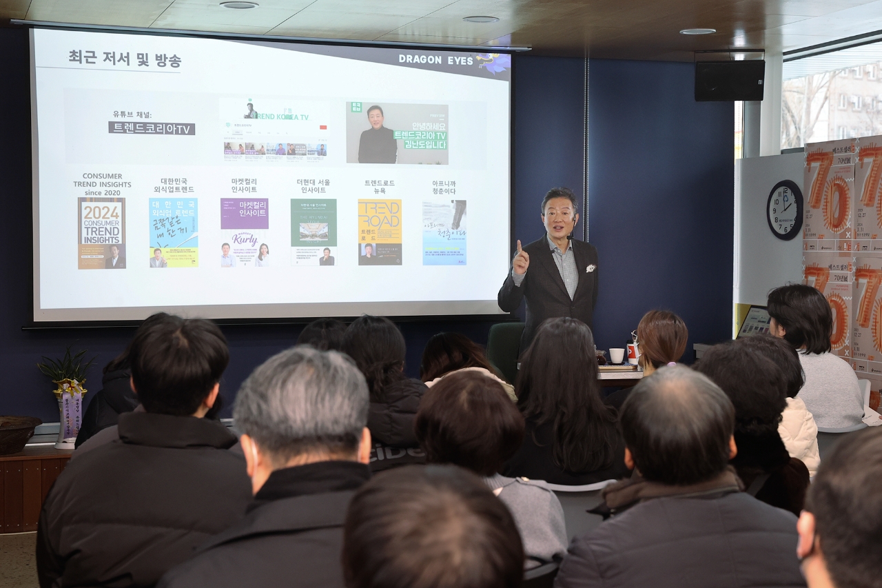 김 교수는 현시대 대한민국의 흐름을 분초사회, 호모 프롬프트, 육각형 인간, 버라이어티 가격 전략, 도파밍, 요즘 남편 없던 아빠, 스핀오프 프로젝트, 디토 소비, 리퀴드폴리탄, 돌봄 경제라는 10가지 핵심어로 요약하고 인공지능의 시대에 새로운 트렌드를 완성할 화룡점정으로 인간이 갖는 고유의 역량을 강조하며 인문학의 중요성을 역설하는 것으로 특강을 마무리했다.