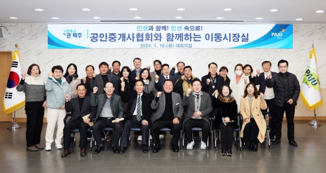 김경일 파주시장은 “부동산 전문가들의 예상처럼 점점 얼어붙는 부동산 시장에 중개사분들을 생각하면 마음이 무겁다”라며, “어려운 상황에서도 삶이 더 나아지는 파주시를 만들기 위해 쇠와 돌도 뚫을 수 있다는 금석위개(金石爲開)의 정신으로 민생회복과 지역경제 활성화를 위해 전력을 다하겠다”고 말했다.