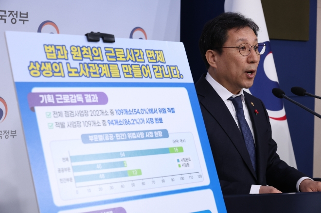 이성희 노동부 차관은 “올해는 민간사업장 중심으로 위반 가능성이 높은 자동차, 조선, 철강 등의 주요업종과 1000인 미만 사업장을 대상으로 근로감독을 확대할 계획”이라며 “산업현장의 노사법치를 일관되게 추진하겠다”고 밝혔다.