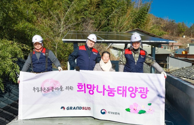 이미지 확대보기그랜드썬은 지난 24일, 독립(후손)유공자를 위한 '희망나눔태양광' 러브하우스 1호를 무상으로 설치했다고 26일 밝혔다.