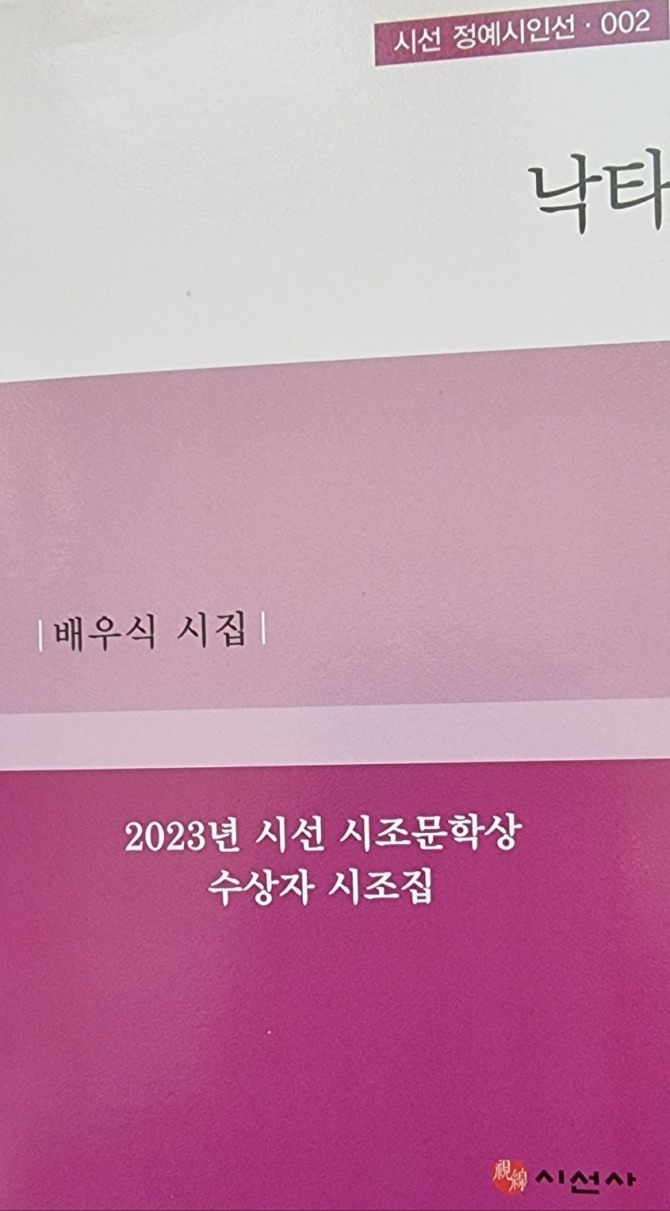 이미지 확대보기시인은 '낙타'(시선사, 2023)에 제1부 19수, 제2부 19수, 제3부 18수, 제4부 18수 도합 74수의 시를 탑재하고 자연과 인간, 계절과 그리움, 동경과 기도의 심경을 간결 명료하게 담아낸다. 시집 '그의 몸에 환하게 불을 켜고 싶다'(고요아침, 2005), 시조집 '인삼반가사유상'(천년의 시작, 2014), 현대시조 100인 선집 '연꽃우체통'(고요아침, 2016), '이렇게 환한 날에'(2021, 고요아침)의 확장이다.