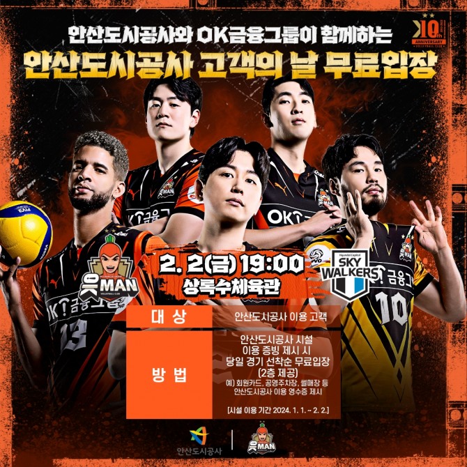 이미지 확대보기행사가 진행되는 경기는 2월 2일 오후 7시 상록수체육관에서 열리는 OK금융그룹 읏맨의 홈경기로, 현대캐피탈 스카이워커스를 상대로 한 V리그 5라운드 첫 경기다.