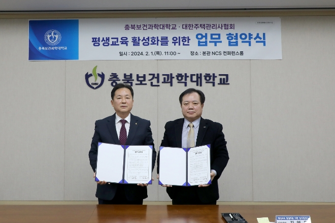 이번 협약을 통해 충북보건과학대는 대학주택관리사 회원을 대상으로 평생교육 과정을 운영하게 됐다. 전기·설비보전 분야 관련 교육을 비롯해 자격증 취득지원, 주택관리 관련 업무 양성과정 등을 지속해서 활성화할 예정이다.