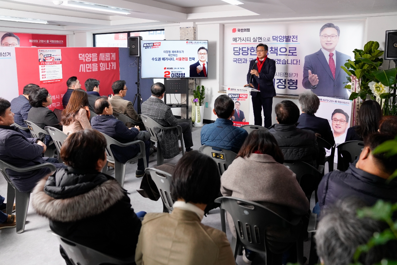 이정형 예비후보는 자신의 비전과 고양시에 대한 애정을 나누며, “제가 정치를 오래한 사람은 아니다”며 “정치는 초보지만, 많은 정치인들이 와서 내실 있는 모임을 만들었다”고 말했다. 그러면서 “고양시와 인연은 2008년 능곡지구 뉴타운 총괄MP를 경기도에서 임명받았다”며 “그러다보니 아무래도 능곡이 있는 고양시 을에서 정치를 해야겠다 느꼈다”고 출마 배경을 설명했다.