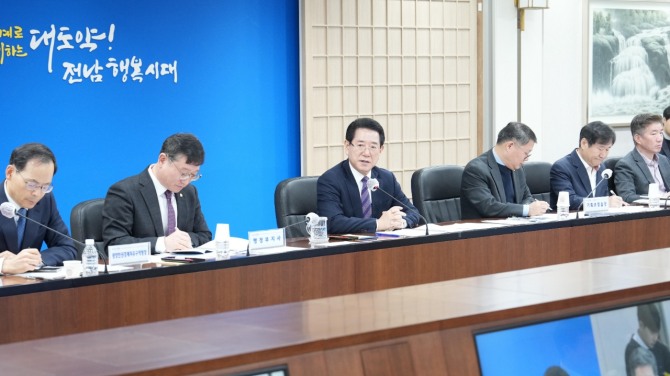 김영록 지사는 이날 오전 도청 서재필실에서 실국장 정책회의를 주재하며 “최근 진행 중인 중앙부처 업무보고와 주제별 민생토론회에서 제시되는 국정 운영 방향을 잘 살펴 실국별로 관련 신규사업 발굴 등 대응계획을 잘 세우라”고 지시했다.