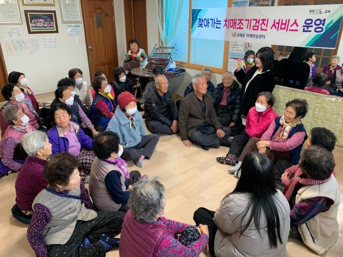 구례군 보건의료원 치매안심센터 전문 인력팀이 어르신들이 자주 이용하는 경로당 60개소를 방문해 인지 선별검사(CIST)와 치매 예방 교육을 진행하고 홍보 물품 등을 지원한다.