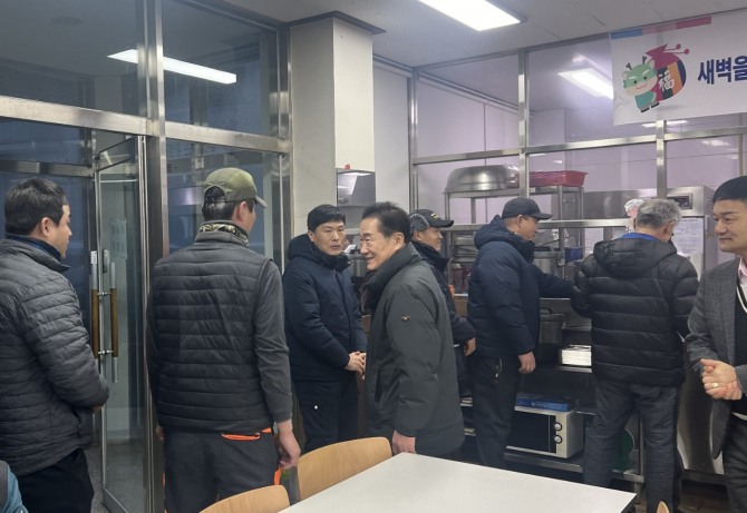 최 시장은 이날 한파 속에 고생하고 있는 현장 근로자 50여 명과 아침식사를 같이 하며 현장 근무 애로사항을 청취했다.