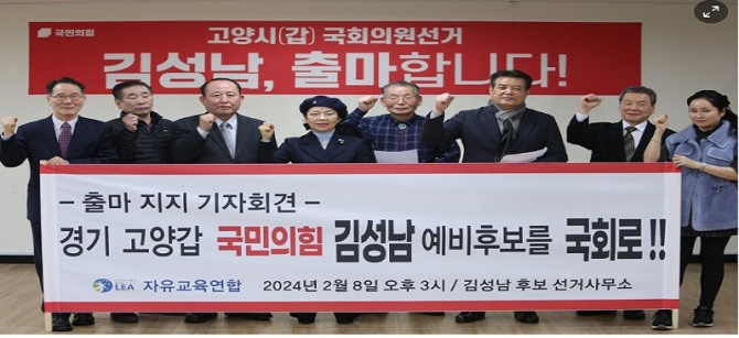 자유교육연합은 “최근 총선에서 한 번도 국민의힘이 승리하지 못한 ‘경기 고양 갑’지역에서 그간 시민사회단체 활동을 통해 국가와 국민에 공헌하고 있는 김성남 박사가 예비후보로 출마한 데 대해 지지를 표명한다”며, “‘경제가 사는 고양’을 선거 구호로, 고양을 ‘경제중심’으로 살리겠다는 포부를 안고 출마한 김성남 후보는 타당 후보의 아성을 깰만한 후보라고 생각한다. 국민의 힘은 고양을 변화시킬 수 있는 김성남 후보를 반드시 공천해 정체된 고양 갑 지역을 발전시킬 수 있게 해야 한다”고 강조했다.