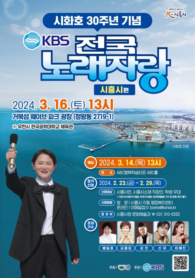 임병택 시흥시장은 “이번 KBS 전국노래자랑 시흥시 편은 ‘시화호 30주년’을 기념해 열리는 만큼, 환경보존의 의미와 시화호의 가치를 알리는 좋은 기회가 될 것으로 기대한다. 시흥시민이 함께 참여하고 즐기는 축제를 통해 일상에 지친 사람들에게 웃음과 행복을 선사할 수 있는 소중한 자리가 되기를 바란다”라고 밝혔다.